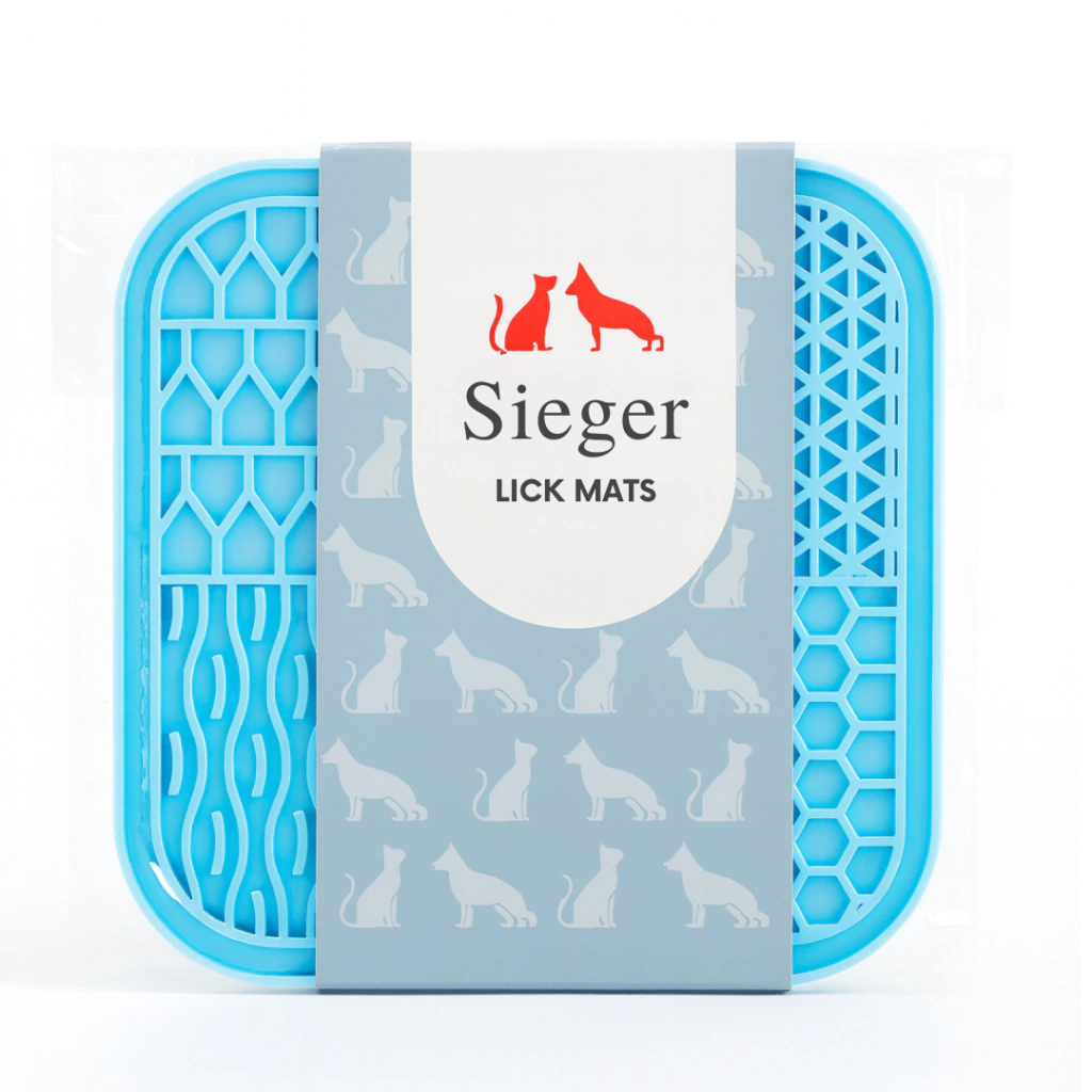 Este combo especial incluye 3 latas de alimento húmedo Sieger Katze adulto 340g sabor salmón y pollo y una alfombra de lamer para estimular a tu gato, calmar su ansiedad y comer más lento.