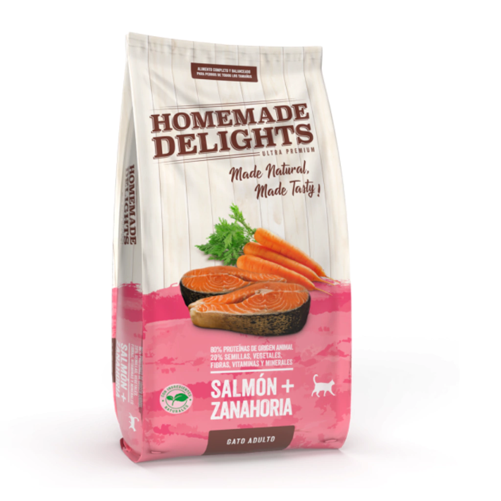 Esta receta combina salmón de alta calidad, zanahorias seleccionadas y una mezcla equilibrada de carnes, frutas y verduras que aportan los nutrientes esenciales para su bienestar diario.