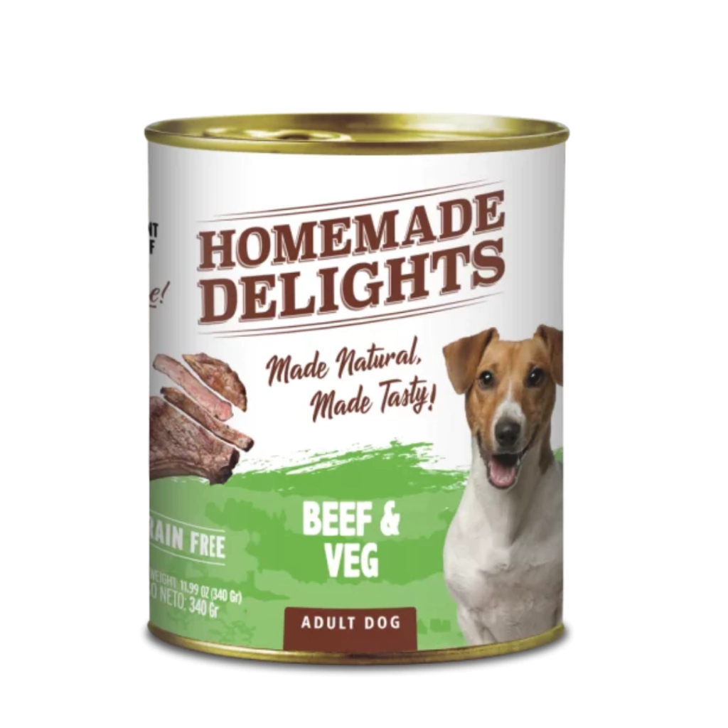 La línea Homemade Delights para perro ofrece recetas húmedas elaboradas con ingredientes reales, naturales y cuidadosamente seleccionados, pensadas para brindar una alimentación rica, nutritiva y llena de sabor.