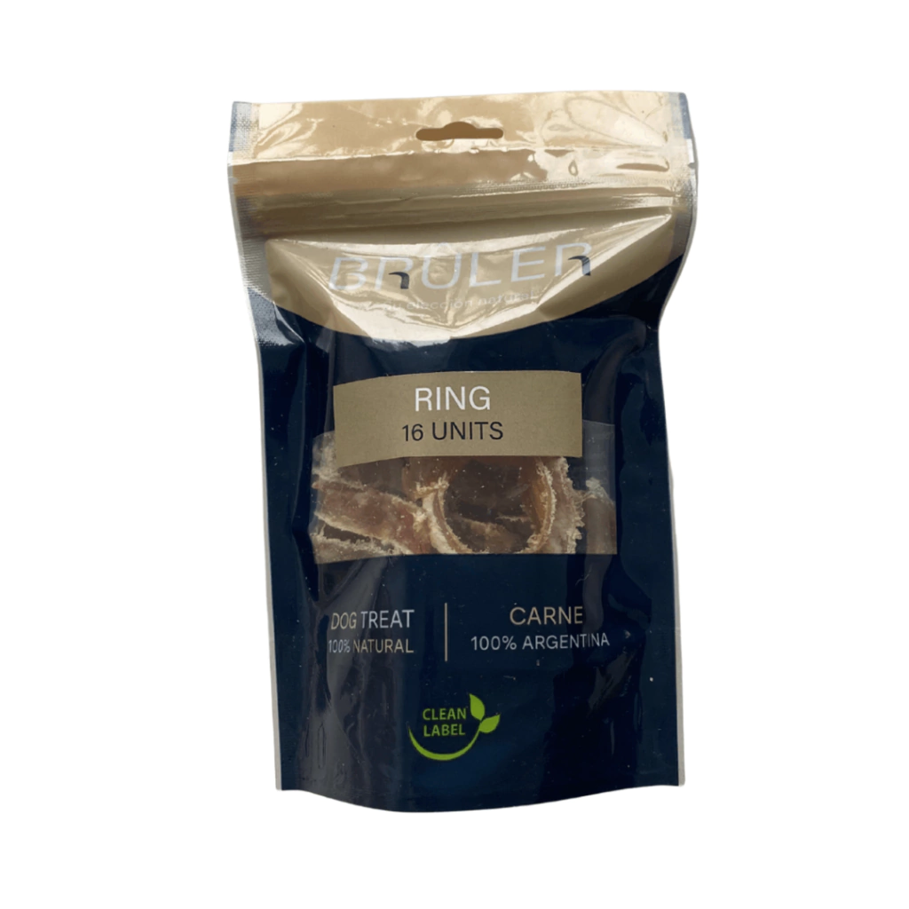 Es un delicioso snack elaborado con carne 100% argentina, cortado en 16 unidades en anillos ideales para premiar a tu mascota.