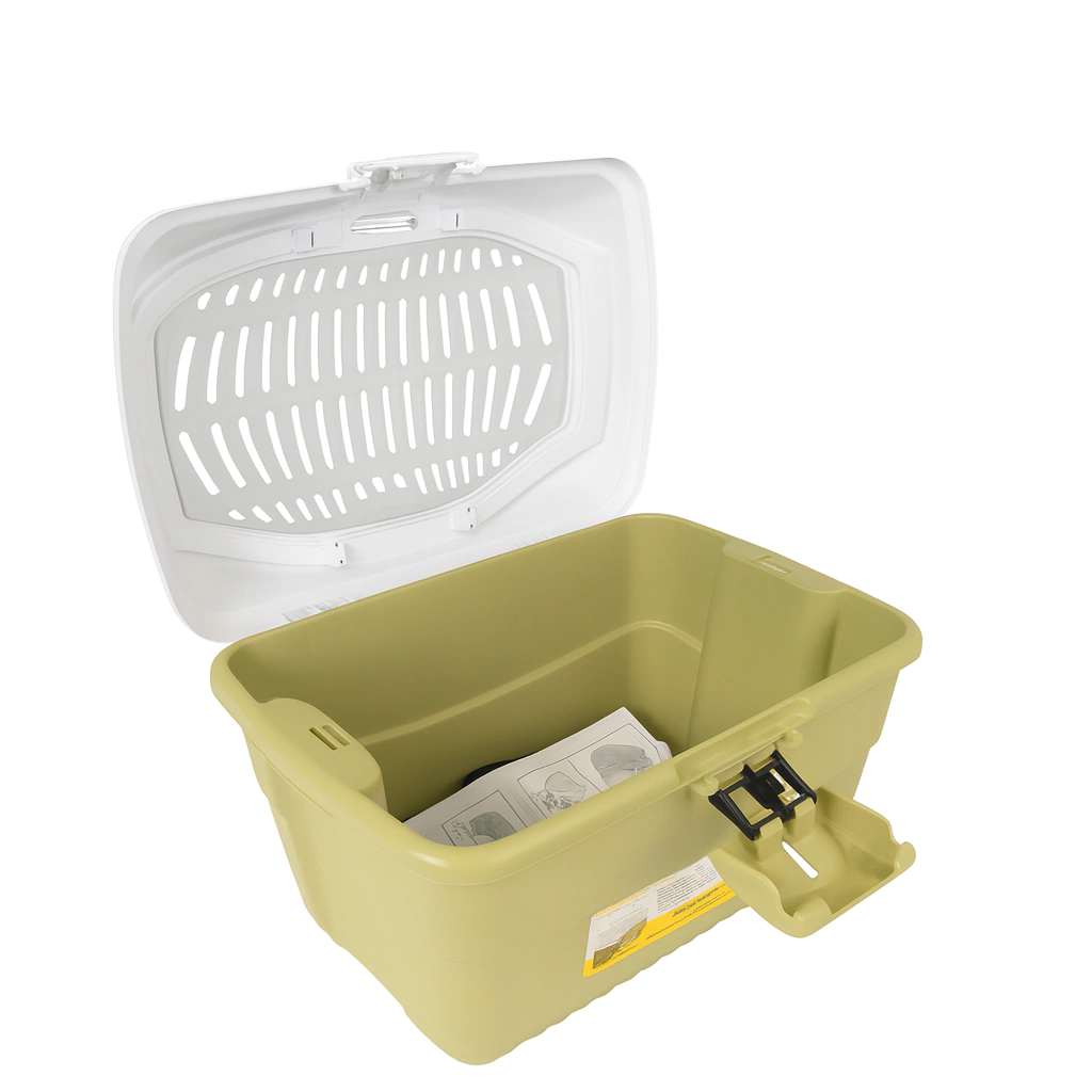 Su diseño práctico incluye una cubierta superior transparente que se abre, permitiendo mayor luminosidad y ventilación gracias a sus múltiples ranuras.