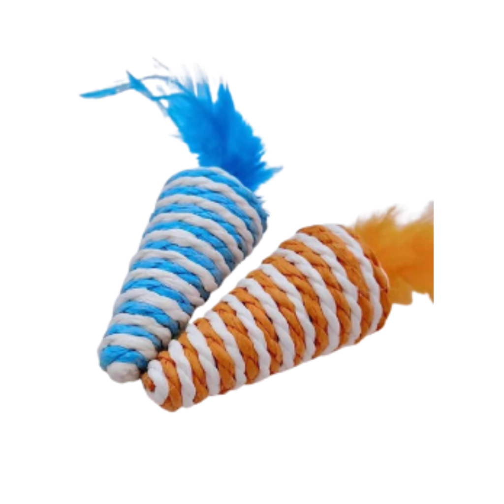 El hilo sisal y la plumita imitan presas naturales, estimulando el instinto de caza de tu gato.